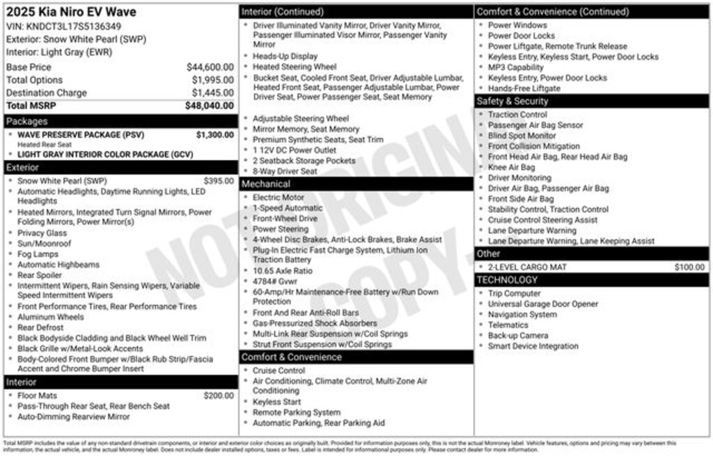 126/101 City/Highway MPG Some rebates listed may require customer to finance through preferred lender, see dealer for details, Price includes: $10000 - Kia Customer Cash. Exp. 01/02/2026