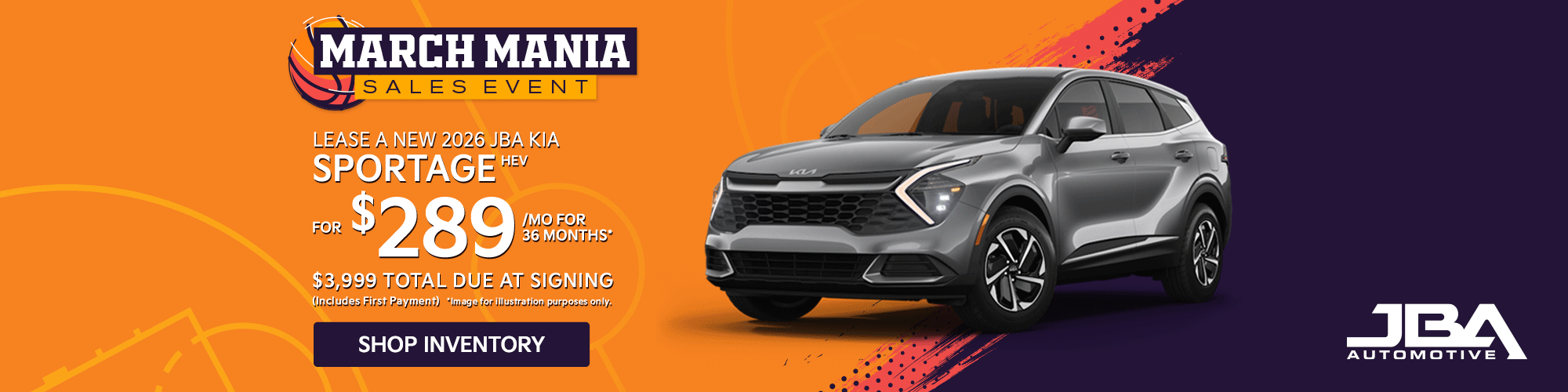 *2026 KIA SPORTAGE HYBRID LX FWD, STOCK K60367, DEAL# 100228, $289 PER MONTH LEASE, $3,999 TOTAL DUE AT SIGNING (INCLUDES FIRST PAYMENT), LEASE FOR 36 MONTHS, 10,000 MILES PER YEAR. PLUS TAX, TAGS. SOME RESTRICTIONS MAY APPLY. $0 SECURITY DEPOSIT DUE. SEE DEALER FOR DETAILS. OFFER ENDS 03/31/2026.