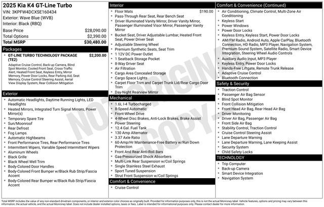 Wave Blue 2025 Kia K4 GT-Line Turbo FWD 8-Speed Automatic 1.6L I4 Turbo