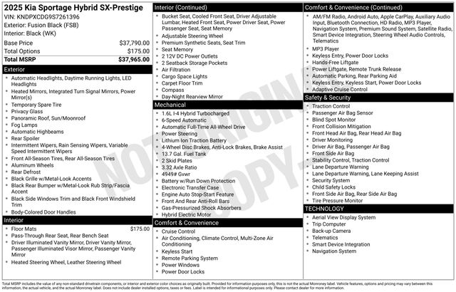 Fusion Black 2025 Kia Sportage Hybrid SX-Prestige AWD 6-Speed Automatic I4