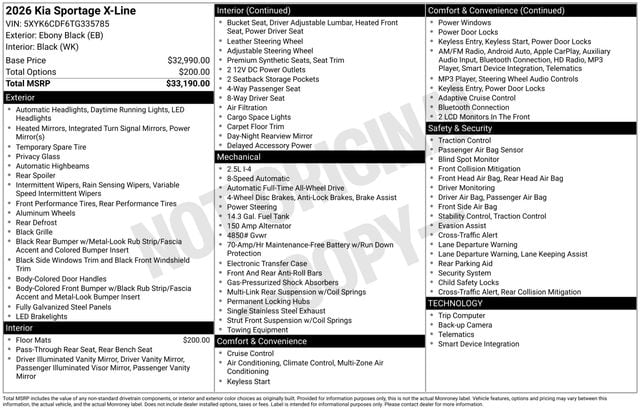 Ebony Black 2026 Kia Sportage X-Line AWD 8-Speed Automatic I4