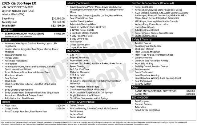 Nebular Blue 2026 Kia Sportage EX FWD 8-Speed Automatic I4
