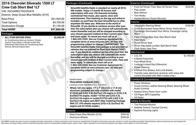 2016 Chevrolet Silverado 1500 LT TOW PACKAGE, BLUETOOTH, BACK UP CAMERA, SATELLITE RADIO, BEDLINER, FOUR WHEEL DRIVE, SERVICE RECORDS AVAILABLE, 10-Way Power Driver's Seat Adjuster, 110-Volt AC Power Outlet, 150 Amp Alternator, 4.2" Diagonal Color Display Driver Info Center, 6 Speaker Audio System, All Star Edition, Alloy wheels, AM/FM radio: SiriusXM, Bluetooth® For Phone, Body Color Bodyside Moldings, Body Color Door Handles, Body-Color Mirror Caps, Body-Color Power Adjustable Heated Outside Mirrors, Chrome Grille Surround, Color-Keyed Carpeting w/Rubberized Vinyl Floor Mats, Deep-Tinted Glass, Driver & Front Passenger Illuminated Vanity Mirrors, Dual-Zone Automatic Climate Control, Electric Rear-Window Defogger, EZ Lift & Lower Tailgate, Front Chrome Bumper, HD Radio, Heavy Duty Suspension, Heavy-Duty Rear Locking Differential, Leather Wrapped Steering Wheel w/Cruise Controls, Manual Tilt Wheel Steering Column, OnStar 6 Months Guidance Plan, OnStar w/4G LTE, Power Windows w/Driver Express Up, Preferred Equipment Group 1LT, Rear 60/40 Folding Bench Seat (Folds Up), Rear Chrome Bumper, Rear Vision Camera w/Dynamic Guide Lines, Rear Wheelhouse Liners, Remote Keyless Entry, Remote Locking Tailgate, Remote Vehicle Starter System, Single Slot CD/MP3 Player, SiriusXM Satellite Radio, Steering Wheel Audio Controls, Thin Profile LED Fog Lamps, Trailering Package.