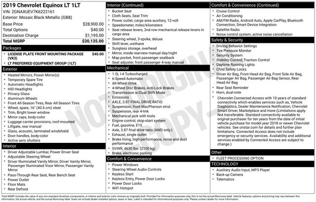 2019 Chevrolet Equinox LT BLUETOOTH, BACK UP CAMERA, SATELLITE RADIO, ALL WHEEL DRIVE, APPLE CAR PLAY, SERVICE RECORDS AVAILABLE, Alloy wheels, AM/FM radio: SiriusXM, Preferred Equipment Group 1LT, SiriusXM Radio.