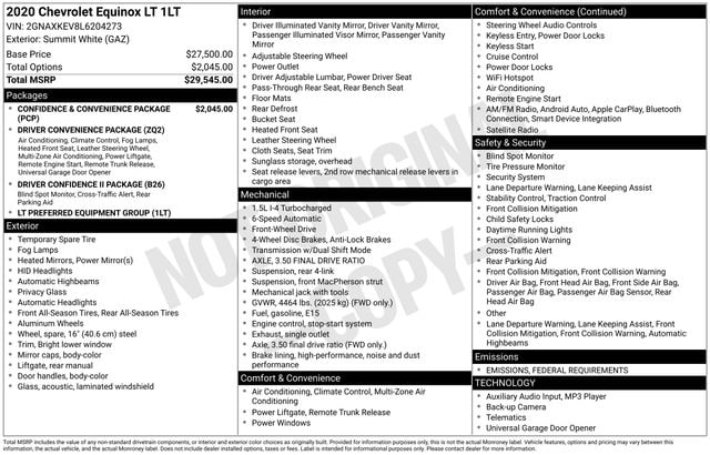 2020 Chevrolet Equinox LT ONE OWNER, BLUETOOTH, BACK UP CAMERA, SATELLITE RADIO, APPLE CAR PLAY, SERVICE RECORDS AVAILABLE, Alloy wheels, AM/FM radio: SiriusXM, Confidence & Convenience Package, Driver Confidence II Package, Driver Convenience Package, Heated Driver & Front Passenger Seats, Preferred Equipment Group 1LT, Rear Power Liftgate, SiriusXM Radio.
