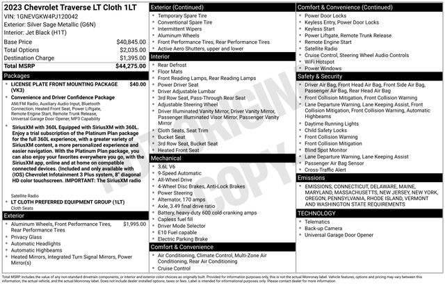 2023 Chevrolet Traverse LT ONE OWNER, BLUETOOTH, BACK UP CAMERA, HEATED SEATS, GM CERTIFIED WARRANTY AVAILABLE, SATELLITE RADIO, ALL WHEEL DRIVE, ONSTAR NAVIGATION, THIRD ROW SEAT, APPLE CAR PLAY, SERVICE RECORDS AVAILABLE, 8-Passenger Seating (2-3-3 Seating Configuration), Alloy wheels, AM/FM radio: SiriusXM, Heated Driver & Front Passenger Seats, Heated front seats, Power Liftgate, Preferred Equipment Group 1LT, SiriusXM w/360L, Wheels: 20" Gloss Black Painted Aluminum (LPO), Wheels: 20" x 8" Aluminum Transit.