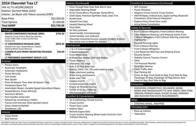 2024 Chevrolet Trax LT ONE OWNER, BLUETOOTH, BACK UP CAMERA, GM CERTIFIED WARRANTY AVAILABLE, SATELLITE RADIO, ONSTAR NAVIGATION, CLEAN VEHICLE HISTORY REPORT, APPLE CAR PLAY, SERVICE RECORDS AVAILABLE, 6-Speaker Audio System Feature, Adaptive Cruise Control, Alloy wheels, AM/FM radio: SiriusXM, Driver Confidence Package, Heated Driver & Front Passenger Seats, Heated Power-Adjustable Outside Mirrors, Heated Steering Wheel, Keyless Open, Lane Change Alert w/Side Blind Zone Alert, License Plate Front Mounting Package, LT Convenience Package, Preferred Equipment Group 1LT, Radio: Audio System w/AM/FM, Rear Cross-Traffic Alert, Rear Park Assist, SiriusXM, Wrapped Steering Wheel.