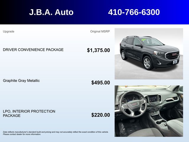 2020 GMC Terrain SLE ONE OWNER, BLUETOOTH, BACK UP CAMERA, SATELLITE RADIO, ALL WHEEL DRIVE, APPLE CAR PLAY, SERVICE RECORDS AVAILABLE, 8-Way Power Driver Seat Adjuster, All-Weather Cargo Mat (LPO), All-Weather Floor Mats, Alloy wheels, Driver & Front Passenger Heated Seats, Driver Convenience Package, Dual-Zone Automatic Climate Control, Interior Protection Package (LPO), Preferred Equipment Group 3SA, Remote Start, Roof-Mounted Luggage Rack Black Side Rails.