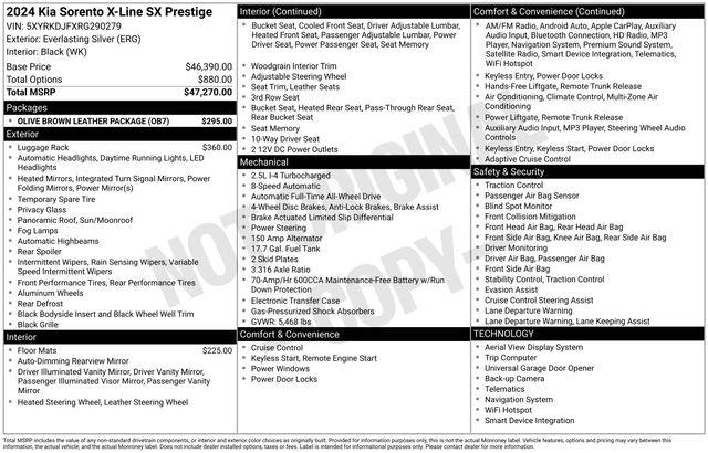 2024 Kia Sorento X-Line SX Prestige NAVIGATION, SUNROOF, LEATHER, ONE OWNER, BLUETOOTH, BACK UP CAMERA, HEATED AND COOLED SEATS, SATELLITE RADIO, ALL WHEEL DRIVE, THIRD ROW SEAT, POWER LIFT GATE, APPLE CAR PLAY, SERVICE RECORDS AVAILABLE, 3rd row seats: split-bench, Alloy wheels, AM/FM radio: SiriusXM, Front Bucket Seats, Heated & Ventilated Front Bucket Seats, Heated front seats, Heated rear seats, Memory seat, Navigation System, Olive Brown Leather Package, Perforated Genuine Leather Seat Trim, Power driver seat, Power Liftgate, Power moonroof, Radio: AM/FM Bose Premium Audio System, Ventilated front seats.