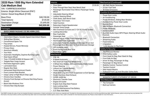 2020 Ram 1500 Big Horn/Lone Star ONE OWNER, BLUETOOTH, BACK UP CAMERA, BEDLINER, FOUR WHEEL DRIVE, CLEAN VEHICLE HISTORY REPORT, APPLE CAR PLAY, SERVICE RECORDS AVAILABLE, Alloy wheels, ParkView Rear Back-Up Camera, Quick Order Package 23Z Big Horn.