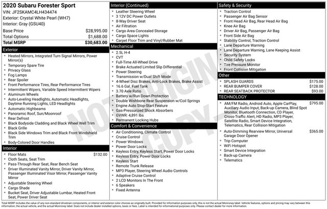 2020 Subaru Forester Sport SUNROOF, BLUETOOTH, BACK UP CAMERA, SATELLITE RADIO, ALL WHEEL DRIVE, BLIND SPOT MONITOR, APPLE CAR PLAY, SERVICE RECORDS AVAILABLE, Alloy wheels, AM/FM radio: SiriusXM, Audio Sys & Driver Assist Tech Pg & Rev Auto Brake, Blind Spot Detection w/Rear Cross Traffic Alert, Exterior Parking Camera Rear, Front Bucket Seats, Heated Front Bucket Seats, Heated front seats, Power driver seat, Power moonroof: Panoramic, Radio: Subaru Starlink 8.0" Multimedia Plus System, Reverse Automatic Braking System (RAB).